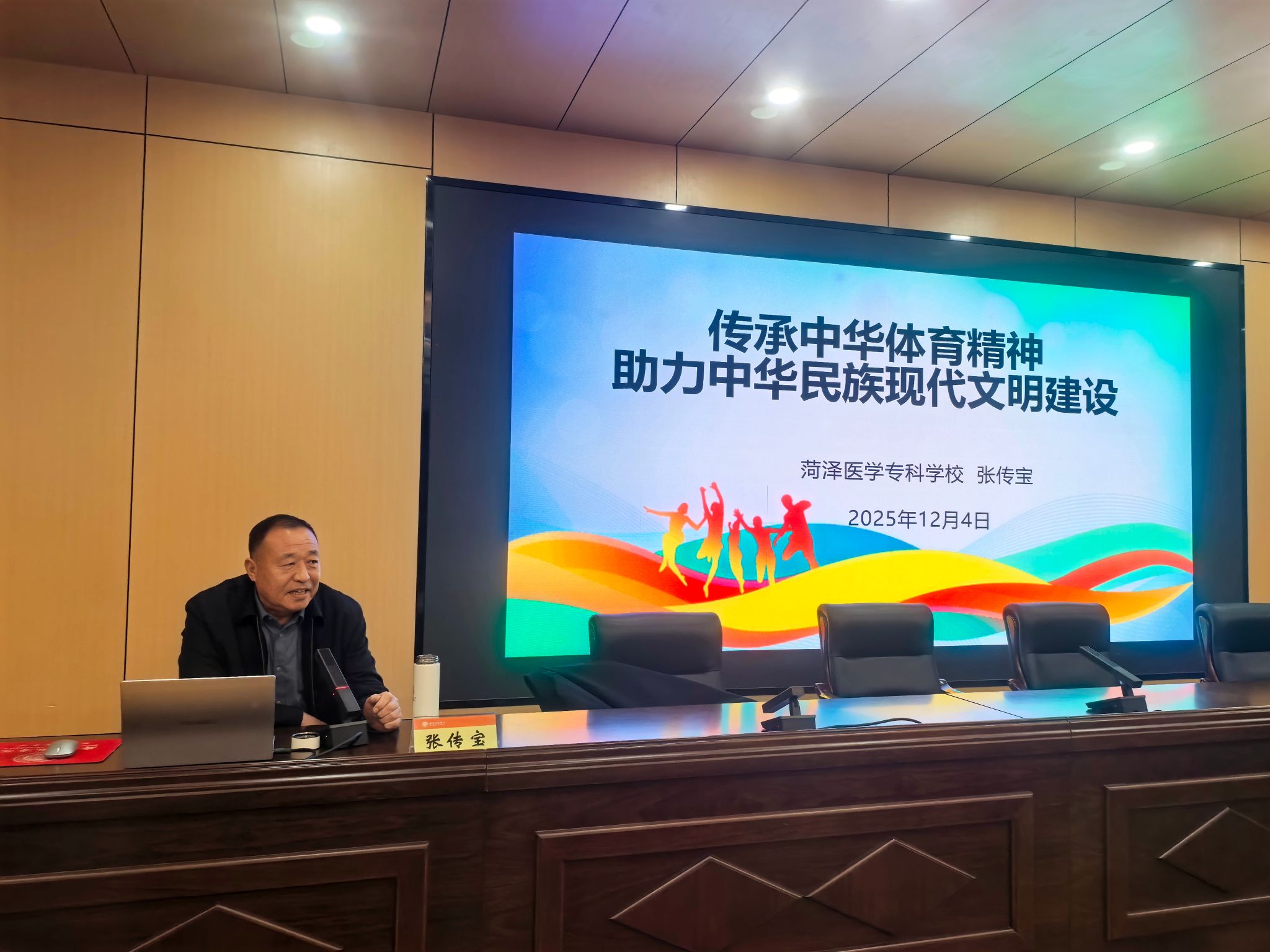 为搭建校友与在校师生的交流桥梁,传承中华体育精神,凝聚学院发展力量优秀校友、学校菏泽校友会会长、菏泽医学专科学校副校长张传宝教授,以《传承中华体育精神 助力中华民族现代文明建设》为题,面向体育学院200余名师生专题讲座讲座由学院党委书记胡颖杰主持。