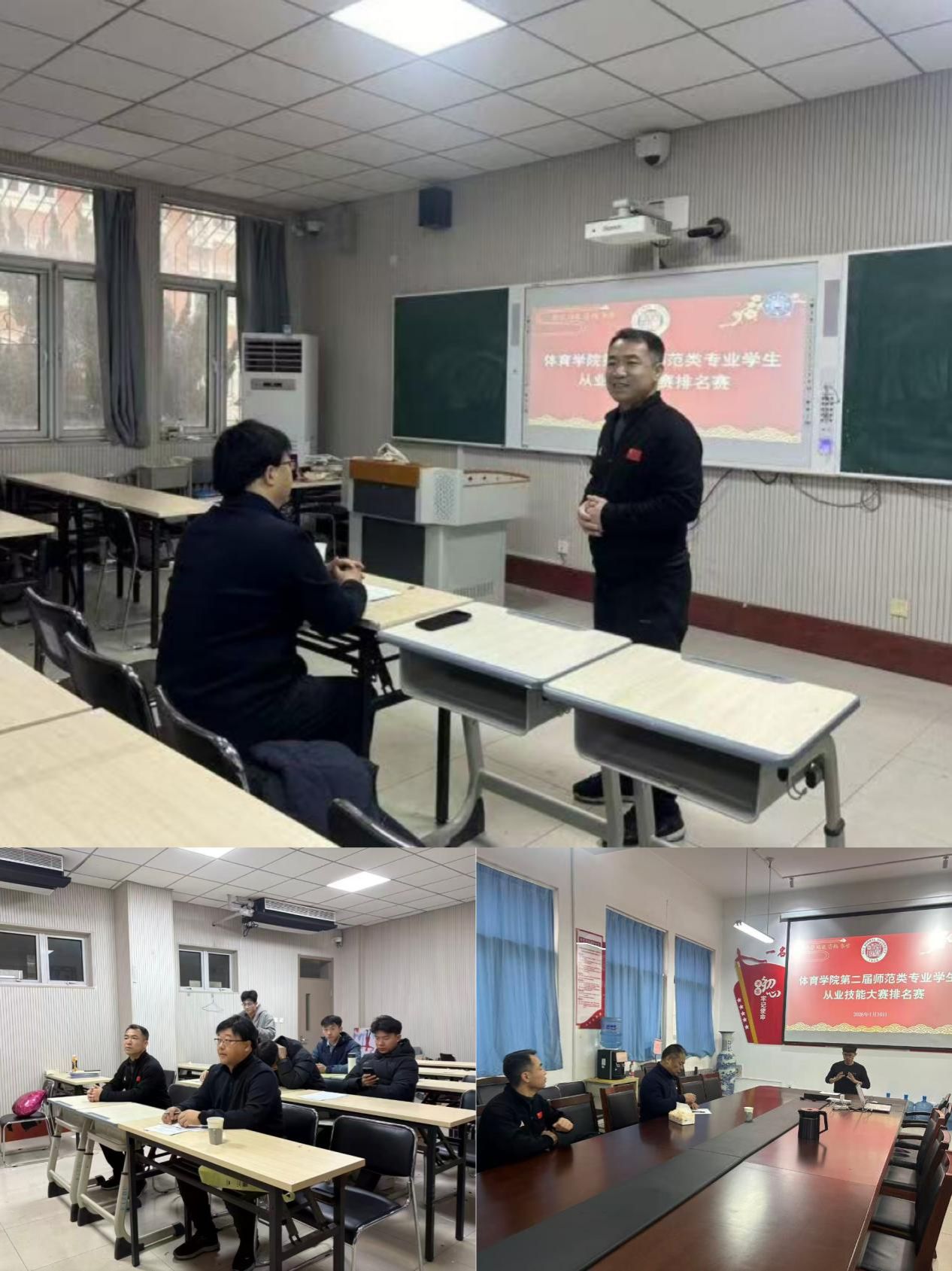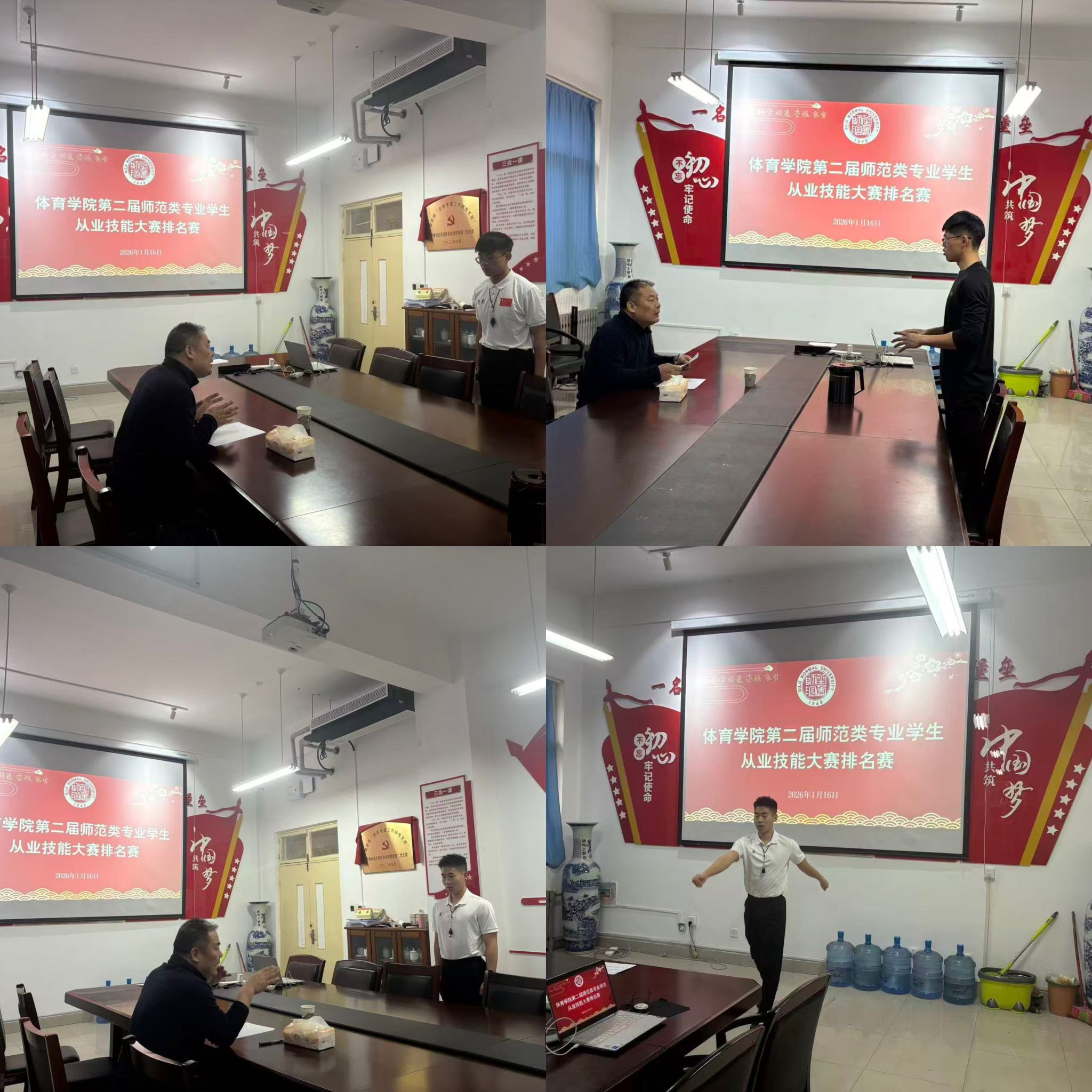 为扎实推进第十四届山东省师范类高校学生从业技能大赛备赛工作,强化体育教育专业师范生教学核心能力,2026年1月16日,体育学院举办第十四届师范类高校学生从业技能大赛培育选手排名赛。本次比赛严格参照省级决赛标准设置流程,涵盖模拟授课与现场答辩两大核心环节,以赛促学、以赛促训,全面检验备赛选手综合素养。体育学院副院长贾磊出席活动并致辞,聊城大学张永虎教授和章丘四中纪委书记、章丘四中初中部党总支书记、章丘区东城实验学校党支部书记明宝华校长作为体育学院从业技能大赛专家受邀指导,学院相关负责人及师生代表参加活动。