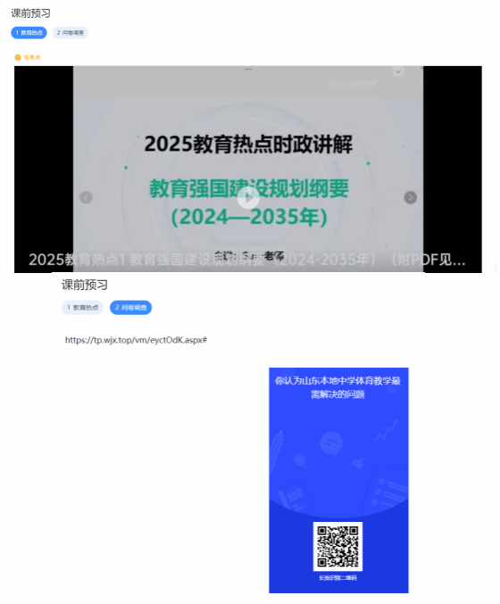 图1学习通课前预习界面,引导学生聚焦山东本地体育教学实际,提前感知选题的实践价值