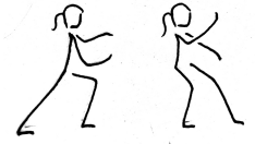 要点: 右脚向前迈出,身体重心移至右腿,同时右臂向上举起,左手向下按,两臂保持弧形。 左手放胯前,右手头边停,双膝微弯曲,后坐提手须统一。 虚步的四个关键字: (1)前:向前跟半步抱球(吸气) (2)后:向后移重心提手(呼气) (3)上:左腿和右手向上提起(吸气) (4)下:落左脚尖成虚步,右手定势(呼气) 练: (1)动作练习 分解练习 (原地平稳左右移动重心) 完整动作练习 递进练习 (2)攻防练习 (3)小组合作学习 (4)集体展示演练 3.赛: (1)个人展示赛(个别学生展示) (2)小组展示比赛 4.体能练习: (1)桩功 (2)腰部练习 (3)耐力练习 | × × × × × × × × × × × × × × × × × × × × × × × ×