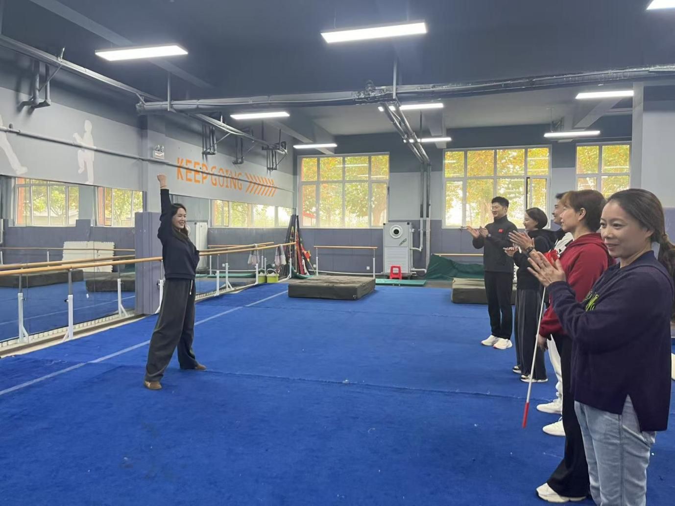 体操教学着重分享注重 “安全与规范并行”,授课教师详细演示了双杠等项目的保护动作与教学流程,强调 “分层教学” 对不同基础学生的重要性 —— 针对初学者侧重基础动作巩固,针对进阶学生则增加难度训练,让每位学生都能在适宜的节奏中提升技能。
