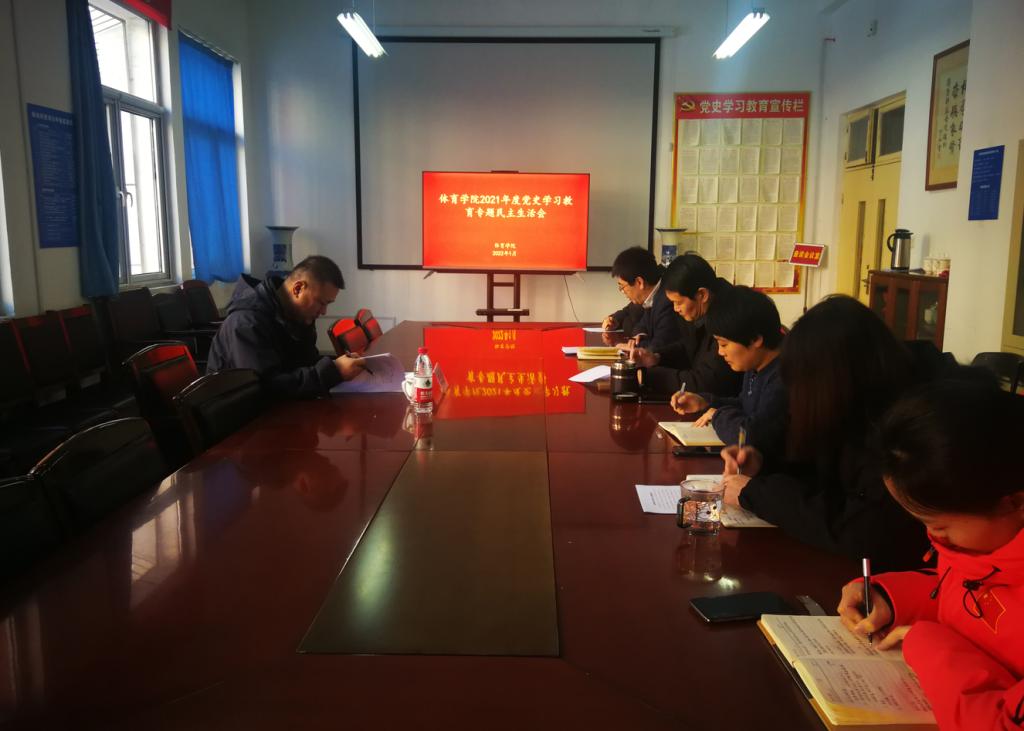 按照党史学习教育有关要求,根据学校关于开好党史学习教育专题民主生活会的通知要求,结合体育学院党总支的实际情况,2022年1月13日上午,体育学院党总支召开2021年度党史学习教育专题民主生活会。音乐学院党总支书记王允华作为校级督导员到会进行督导,体育学院领导班子成员、党支部书记代表、教师代表参加了会议,会议由体育学院党总支书记胡义忠主持。