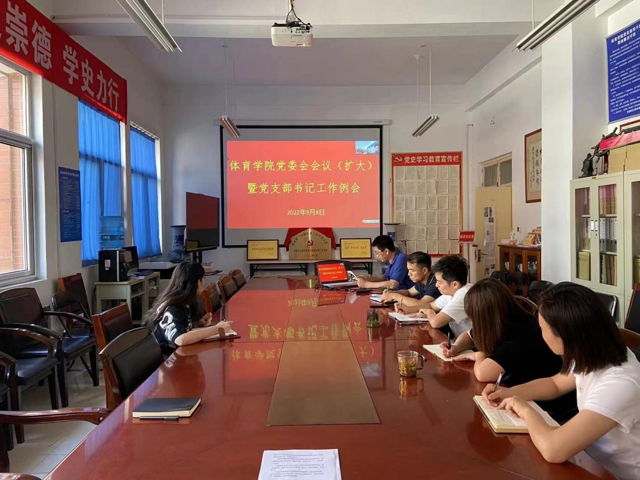 9月8日下午,体育学院在学院会议室召开党委会(扩大)会议暨党支部书记工作例会,会议采取线上线下相结合方式进行。体育学院党委书记胡义忠主持会议,学院党委委员、各党支部书记及相关人员参加会议。