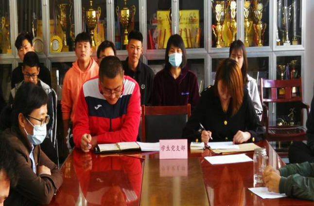 为提振师生奋斗热情,铭记初心使命,4月8日下午,体育学院学生党支部在二号教学楼B106会议室召开全体党员会议,会议由学生党支部书记闫莉莉主持,全体师生党员出席参加会议。