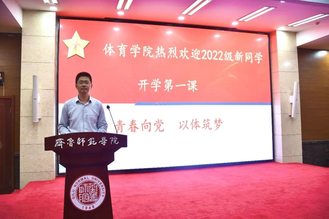 体育学院党委书记胡义忠以“青春向党 以体筑梦”为题为2022级新生讲授“开学第一课”。他讲到青春向党是一种信仰,只有秉持这种坚定且正确的信仰才能更好的成长成才,每名同学都应该“知党情、感党恩、听党话、跟党走”,作为新时代的大学生要认真学习习近平新时代中国特色社会主义思想,要认真学习习近平总书记关于体育的重要论述,要把体育放在体育强国梦、中华民族伟大复兴的中国梦的角度来看待,要热爱自己的专业热爱体育事业,要把强国有我作为一份对祖国对民族对社会的誓言,为祖国民族和社会的发展贡献力量。要弘扬伟大的精神,践行中华体育精神、中国女排精神、北京冬奥精神,他从“四要”“三转变”“三学”等方面告诉学生如何更好的适应大学生活。他最后强调“我们每个人的梦想、体育强国梦都与中国梦紧密相连。没有强大祖国,何谈个人梦想?”,每名同学都应践行社会主义核心价值观、积极投身社会实践,发扬志愿服务精神,通过个人努力实现自己的梦想,共同助力伟大的中国梦。