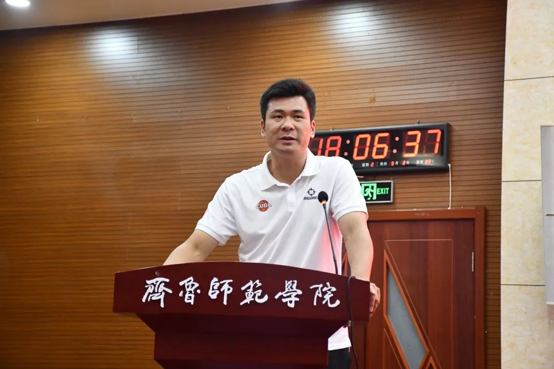 体育学院副教授孙强代表全体教师教师发言,他首先向2022级新同学表示热烈欢迎,他结合自己的经历从树立专业思想、培养专业兴趣、在平凡的生活中学会创造、树立持续拼搏的精神等方面,为新生提出了宝贵的建议,鼓励新生珍惜四年大学生活,树立远大目标,努力学习,立志成才。