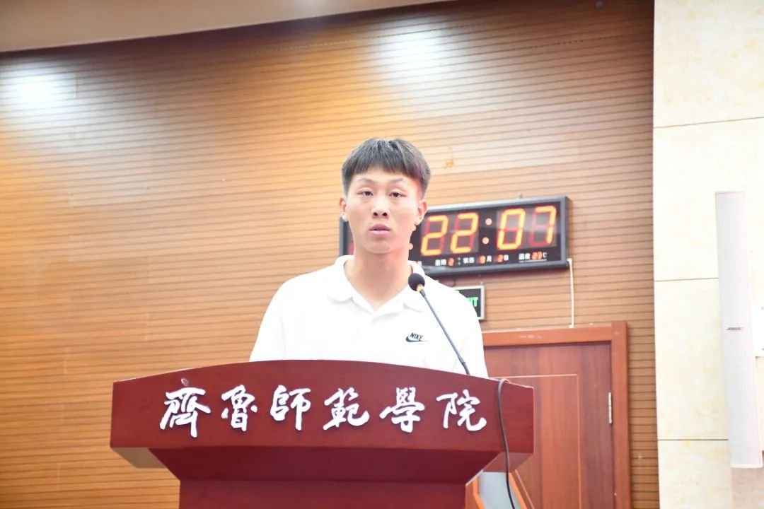 2019级体育教育本科专业学生宫卫作为老生代表发言,他结合自己大学生活的经验,为新生们树立起榜样,鼓励新生们勤奋学习,勇于实践,不负韶华,让青春不留遗憾。