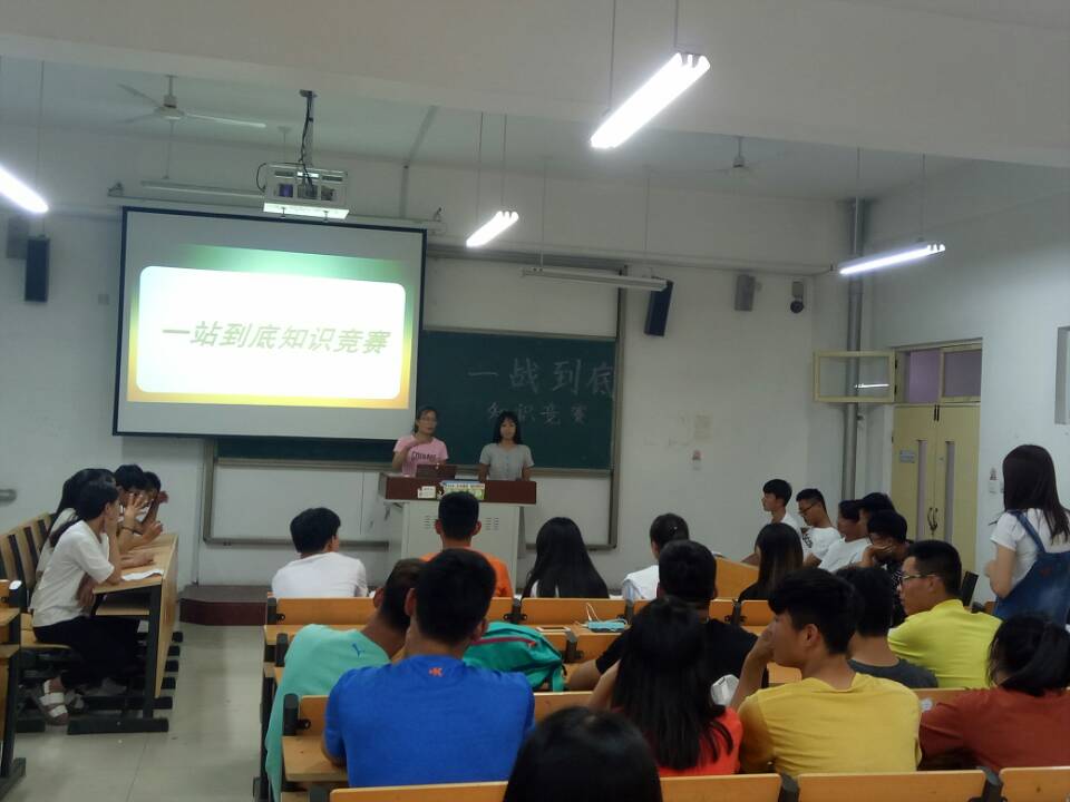 2017年5月17日,在二号教学楼A317举行了《一站到底》初赛。2016级体教一班、二班、三班、社会体育班、体育运营与管理班分别选出了五名选手参加了这次比赛,他们热情积极,为本场比赛增添了光彩与乐趣。
