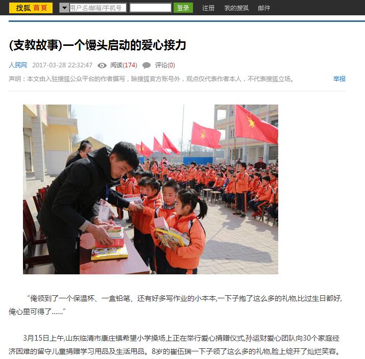 体育学院大三学生孙运财爱心故事引起广泛关注