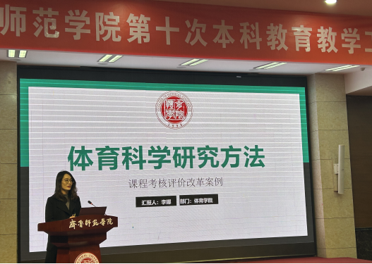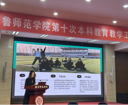 2025年2月26日上午,我校第一学术报告厅内,齐鲁师范学院第十次本科教育教学工作会议正在热烈进行中。会议为期3天半,体育学院李娜教师分享了她在《体育科学研究方法》课程上的考核评价改革探索与成效。