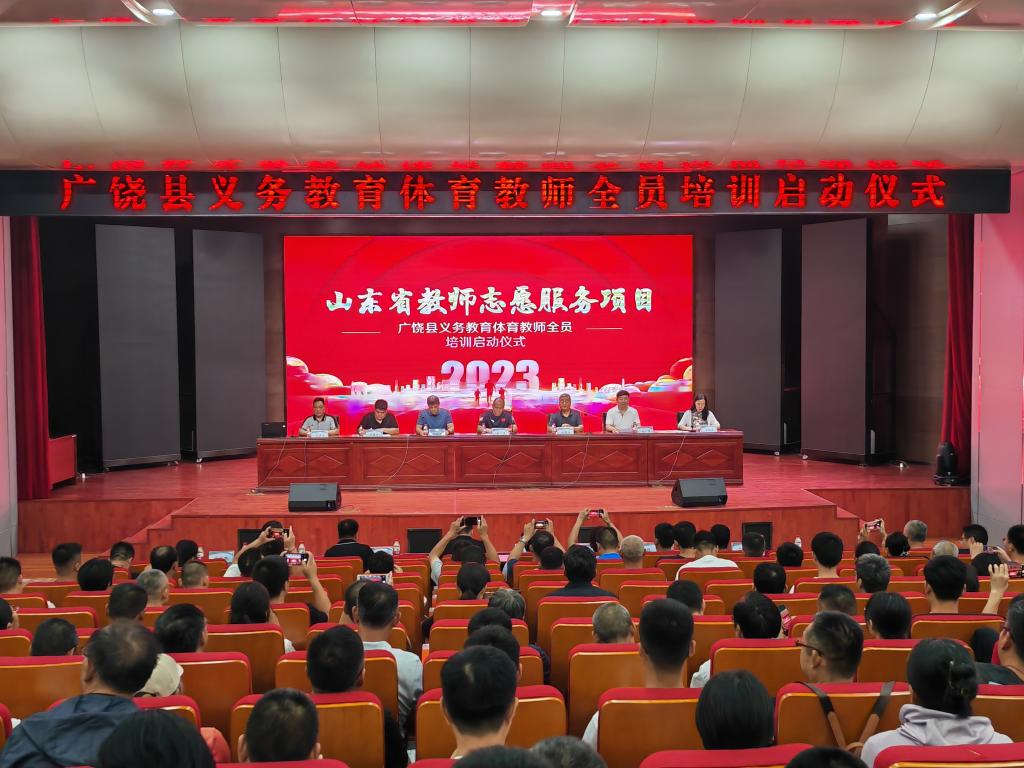 7月10日,由山东省教育厅主办、齐鲁师范学院承办的2022年山东省教育志愿服务项目——广饶县义务教育阶段体育教师全员培训班顺利开班。齐鲁师范学院体育学院院长马涛、东营市教育局二级调研员刘德强、齐鲁师范学院体育学院副院长张雷、广饶县教育工委常务副书记、县教育局党组书记局长杜之宁等相关领导出席开班仪式。仪式由广饶县教育局党组成员、教育事业中心主任李向花主持,全县200余名中小学体育教师参加。