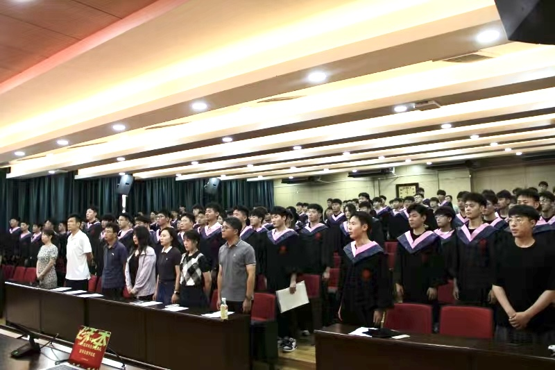 师恩长铭,鹏程共期。党委副书记胡颖杰代表学院对全体2025届本科毕业生致以最诚挚的祝贺和最美好的祝愿,他深情寄语毕业生,一屋不扫何以扫天下,在小事中锤炼责任与担当,“扫屋”的本质是对“责任”的践行,愿同学们都能以扫屋的踏实,奔赴扫天下的远方;语言沟通是我们在座各位毕业生走向社会的“第一软实力”,其意义贯穿职业发展、人际关系与自我实现等多个维度,愿同学们都能以语言为舟,在更广阔的天地中,讲述属于自己的精彩故事;愿同学们以体强身、以体育心,做到身心一统,秉承学院“明德强体 笃学善行”院训,踔厉奋发、勇毅前行,以实干实绩书写人生精彩华章。