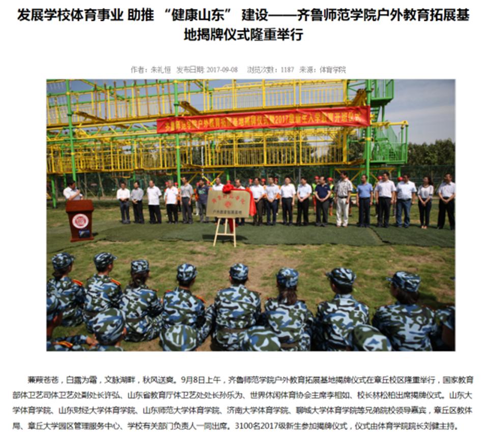 学校建立户外拓展实践基地受到教育部、省教育厅、章丘区教体局、世界体育休闲协会领导的充分肯定。