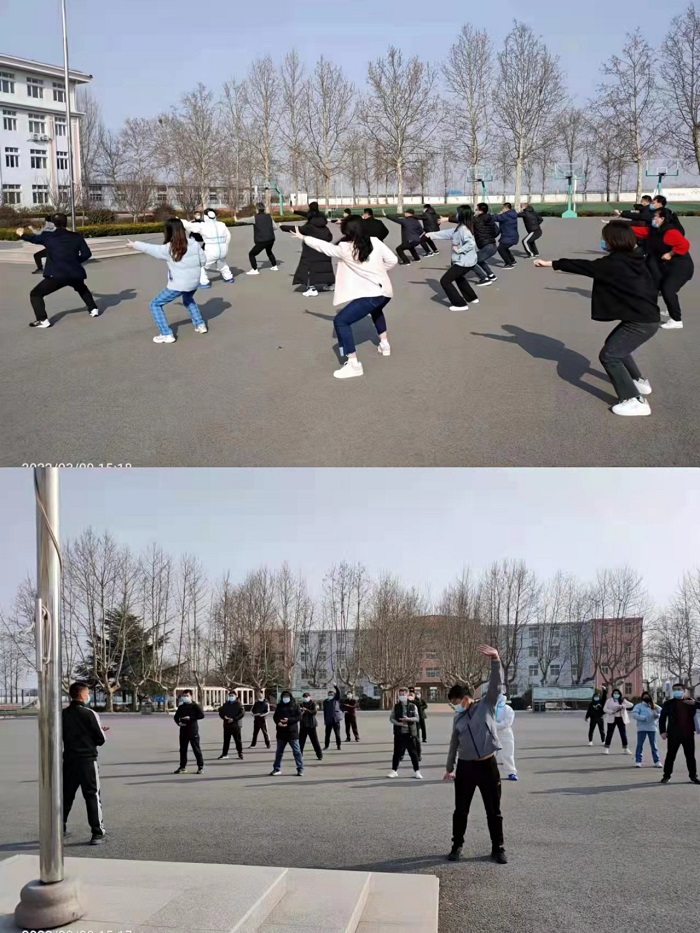 事情是这样的:2月20日,来自齐鲁师范学院武术教育中心的白滨、黄浩霖两位教练员来到山东省莱西市职业中等专业学校开展“校园武术”推广工作。不曾想,两周之后突然获知该市发现新冠肺炎确诊病例的报告。从3月5日开始启动了一级防控响应,作为疫情防控人员物资临时周转地,莱西市职业中等专业学校迅速进入战时状态,各路人员紧急调动,众多的车辆、物资纷纷涌来。生命重于泰山,疫情就是命令,防控就是责任。白滨和黄浩霖当即向学校领导请缨,火速加入到了疫情防控工作的第一线。