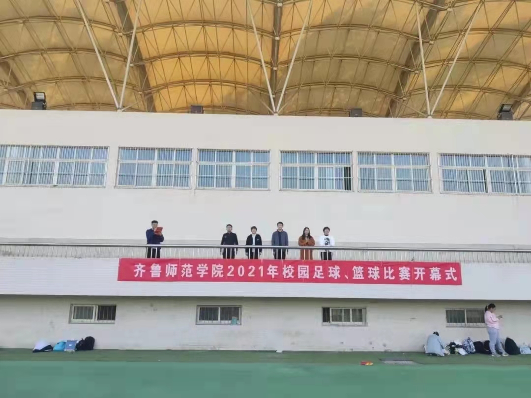 金秋十月,霞染枫红,丹桂飘香。齐鲁师范学院迎来了2021级朝气蓬勃的新生们,篮球“迎新杯”以及校园足球赛如约而至。由体育学院学生会承办的2021年“迎新杯”于2021年10月11日在齐鲁师范学院操场举行开幕式。出席本次篮球赛开幕式的嘉宾有体育学院院长朱礼恒,党总支副书记李萧,张立天老师,聂雯雯老师,李伟秋老师。