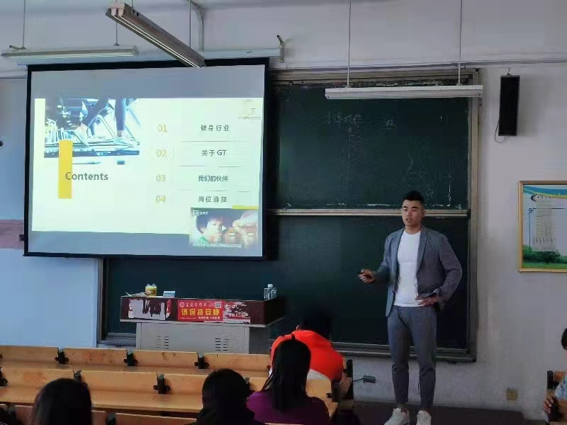宣讲会上,GT健身俱乐部的两位老师分别介绍了GT健身俱乐部的体系以及做健身教练的神奇与快乐,结合工作中的大量实例,为同学们分析如何在“找工作”、“面试工作”、“得到工作”等阶段做有准备的人。他们认为,大学生找一份好工作的前提是要有足够的经验积累。大学阶段,同学们不仅要进行知识层面的积累,更要进行人生经历和社会阅历的积累。他们一致认为,健身教练是一个既能让人快乐工薪又高的职业,并对同学们做了激励,激励大家积极努力,成为广大健身教练中的一员。