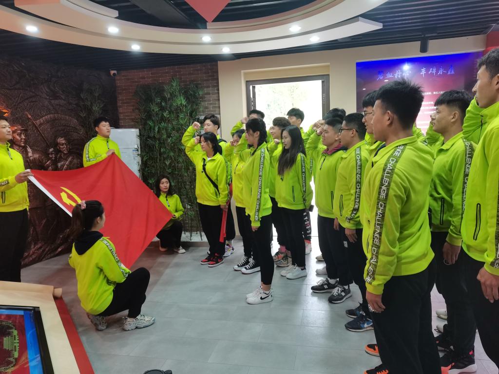 参观学习的尾声,师生党员面向党旗重温入党誓词,大家在鲜红的党旗前整齐列队,右手握拳举过肩头,面向党旗庄严宣誓:“我志愿加入中国共产党,拥护党的纲领,遵守党的章程,履行党员义务,执行党的决定,严守党的纪律保守党的秘密,对党忠诚,积极工作,为共产主义奋斗终身,随时准备为党和人民牺牲一切,永不叛党。”誓言铮铮,响彻春日的石峪寺,这正是体育学院师生不忘初心,一心向党的决心。
