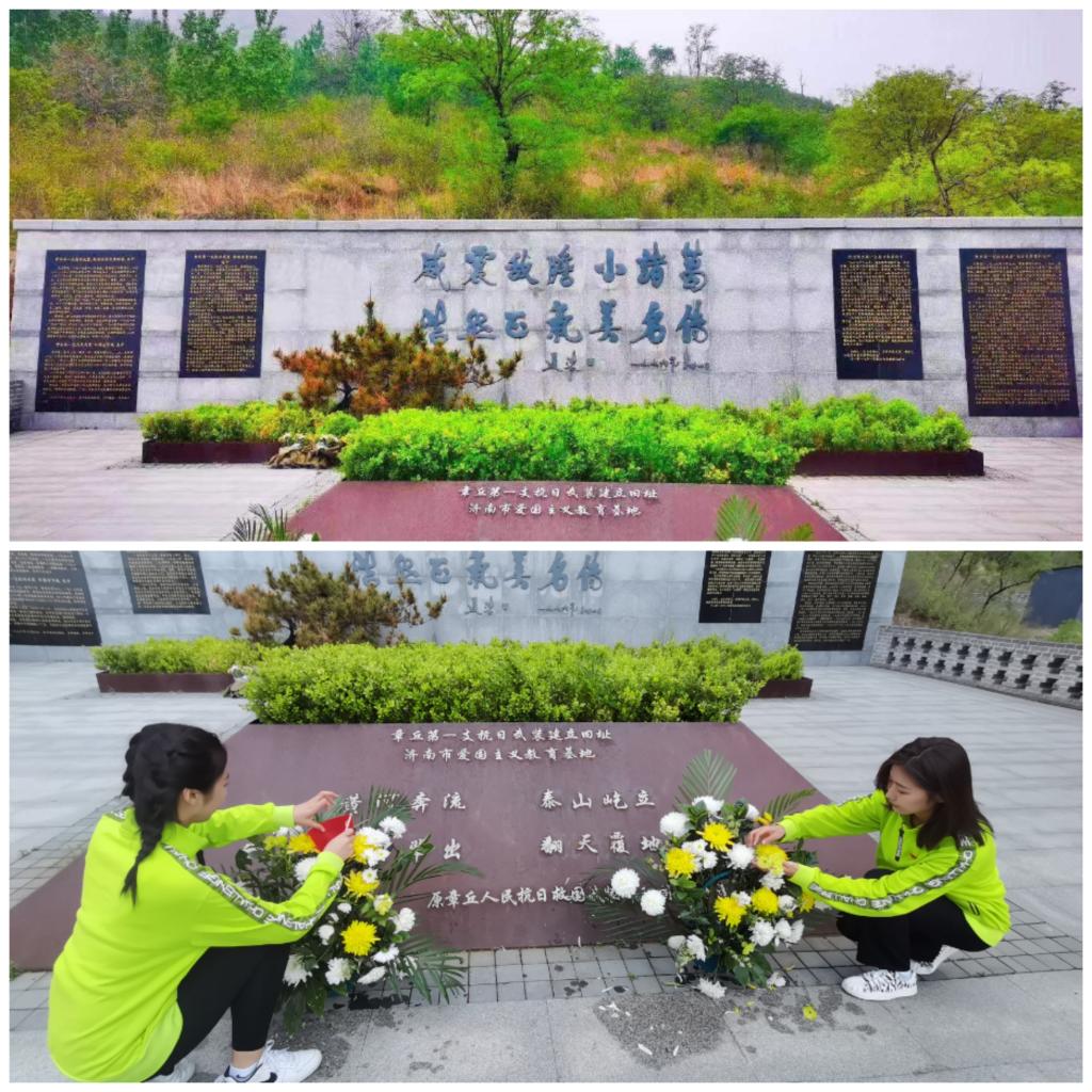 在随后的革命先驱纪念台的参观中,看到纪念碑前凌乱的菊花以及掉落的党旗,同学们纷纷主动上前整理,小心翼翼的将党旗摆正,随之所有同学严肃列队向革命先烈致敬。