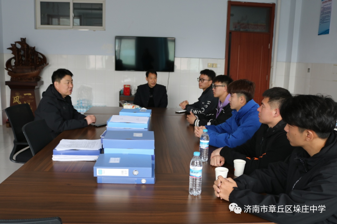 垛庄中学党支部书记、校长赵玉明对远道而来的五位大学生表达了真诚的感谢,并向他们介绍了垛庄中学的基本情况,同时表达了学生们渴望能用自己的努力拼搏出美好未来的心愿。齐鲁师范学院的五位优秀大学生一致表示,要为山区教育发展尽自己的一份力量,为孩子们送上精彩的体育课。