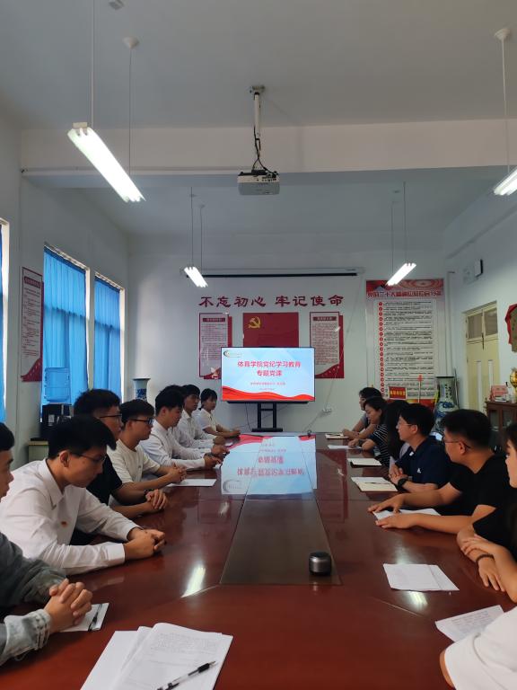 为推动党纪学习教育走深走实,引导学生党员坚定理想信念,牢记党员身份,勇于担当作为,7月4日上午,体育学院党委副书记赵宝丽以“‘学纪 明纪 知纪 守纪’增强遵规守纪自觉”为题为学生党员讲纪律党课。学生党支部书记、学生党员及入党积极分子代表参加会议。