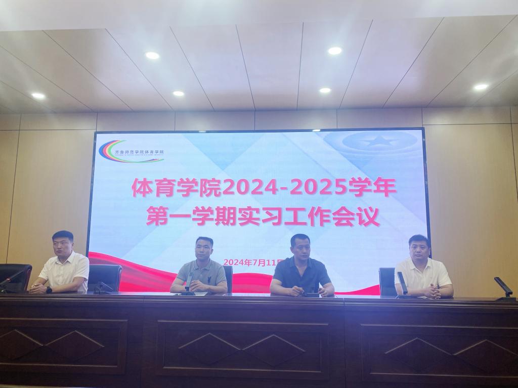 为进一步强化学生对专业知识的理解和应用,推动我院2021级学生专业实习工作顺利进行,7月12日体育学院在第二报告厅召开2024---2025学年第一学期实习工作会议。体育学院党委副书记胡颖杰,副院长贾磊、张建东,武术教育中心副主任姜晓林及2021级实习专业学生参加会议。