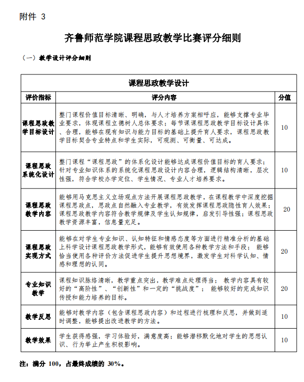 附件3:齐鲁师范学院课程思政教学比赛评分细则