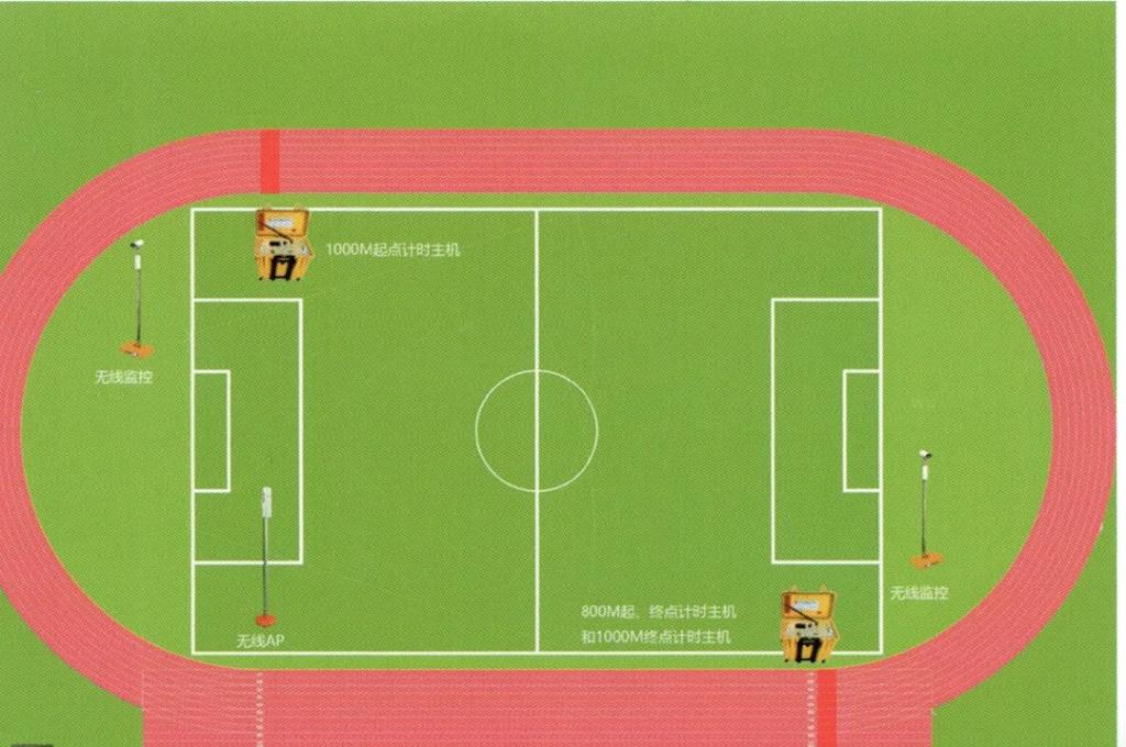 3.男生从1000米的起点起跑,在跑道进行两圈半的跑步,最后通过终点,听见“滴”声后,终点计时主机自动停止计时并记录考试成绩。