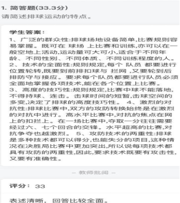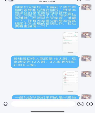 在批阅学生提交的章节测验和作业之后,我也发现了一些问题:包括学生对一些知识点的理解不够清晰,容易混淆一些概念,我总结了一些易错点,通过QQ群统一为学生讲解答疑。对于体能锻炼视频中出现的错误动作,也统一为学生进行讲解。
