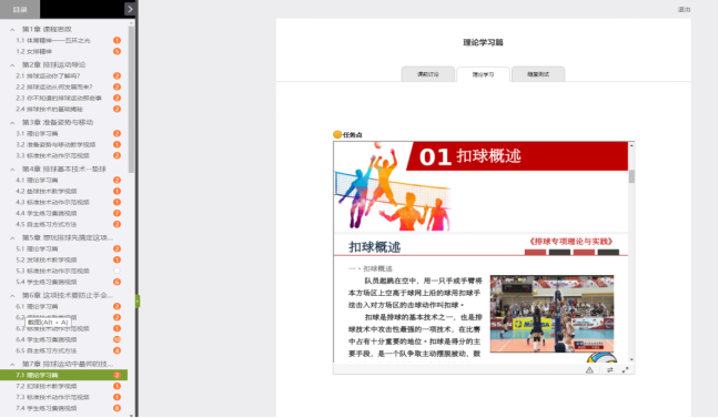 除了排球理论知识的讲授以外,针对学生在宿舍上课的特点,拍摄制作了排球技术动作和室内健身练习的示范视频,全方位、多角度将排球授课与宿舍锻炼有机结合。