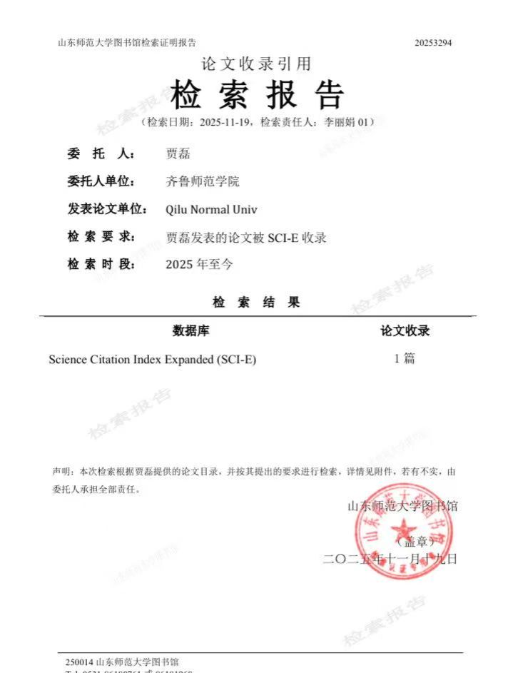 国际期刊论文:在 SCI/SSCI收录的国际权威期刊上发表论文6篇(第一完成人),涉及运动与认知健康、运动与代谢等领域,分属中科院一区、二区、三区。此外,在EI会议等发表多篇论文。